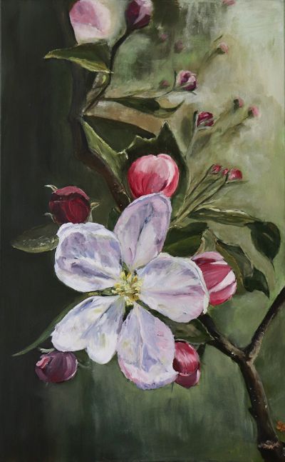 Appelbloesem, olieverf op linnen, 50 x 80 cm