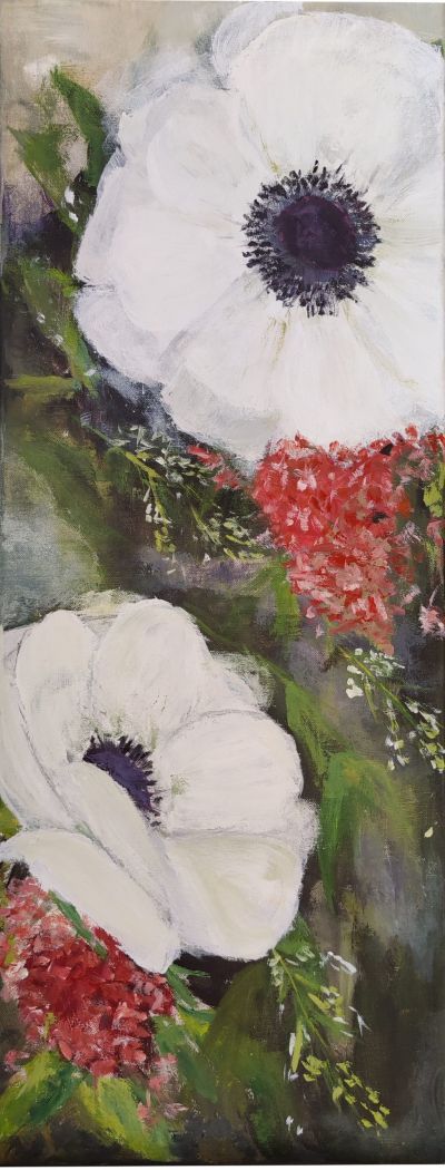Klaprozen, acryl op linnen, 100 x 40 cm